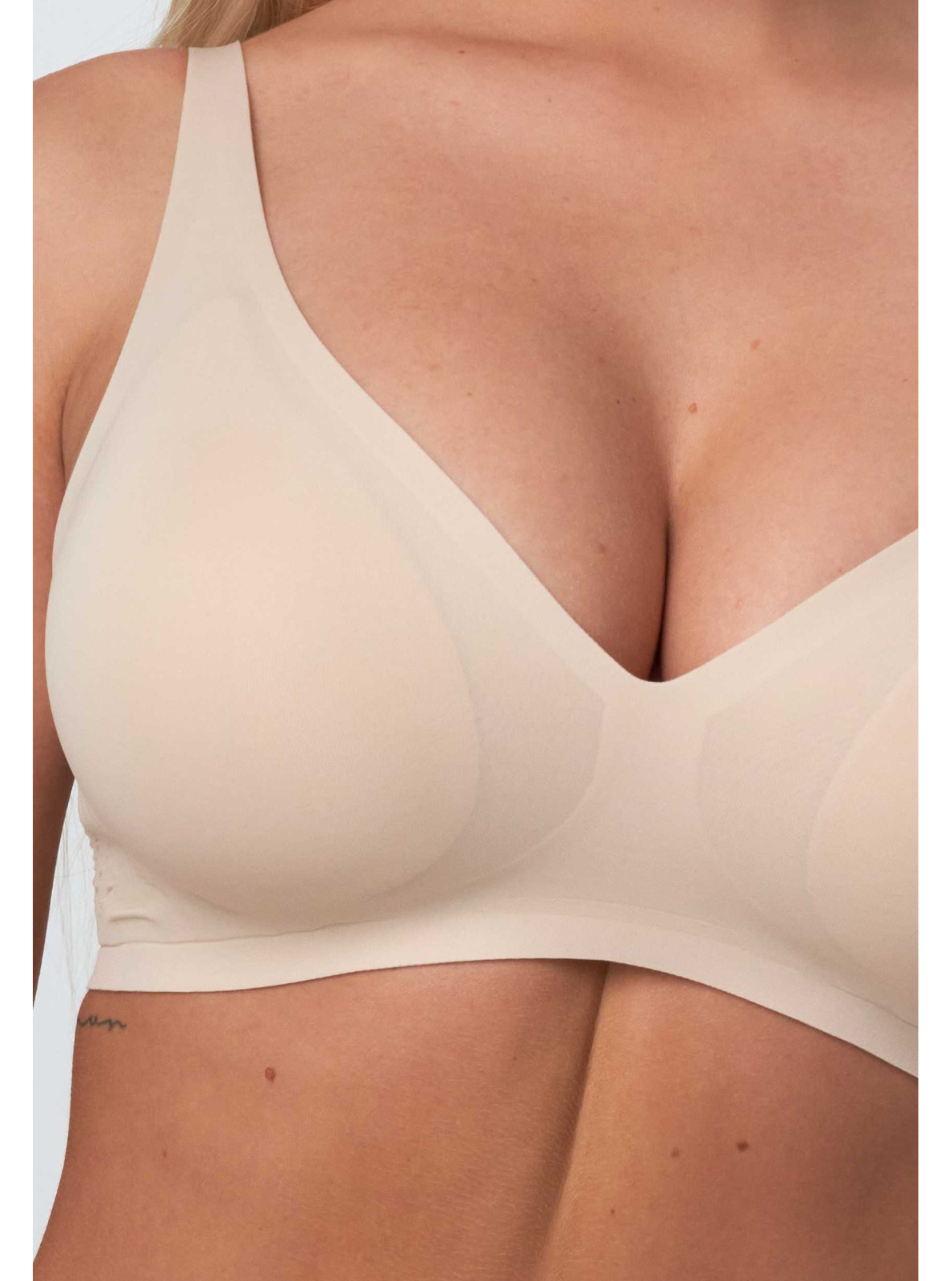 Představujeme REVOLUCI V POHODLÍ! Bezešvá, předtvarovaná podprsenka bez kostic, která spojuje výjimečné pohodlí s jemnou elegancí. Měkký materiál se dokonale přizpůsobí tělu, zatímco vyjímatelné vyztužené košíčky s lehkým push-up efektem ve spodní části zajistí přirozený tvar a potřebnou oporu.
